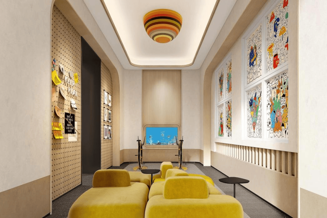将来业从脚不出社区也能满脚丰硕社交及休闲空间的需求,此中包罗不雅澜剧场、半岛水吧、拾光艺境、友邻客堂、知海书屋、童梦空间、悦活六合等功能空间,将来丰硕糊口场景浮现面前~为邻里之间的协调创制宾至如归的艺术空间,室表里空间的交融,景不雅地面延续到室内,地面专属楼盘logo特地定制,弧形墙面细节包抄,空间静谧。这里不只是艺术取文化碰撞的璀璨舞台,更是以书为媒、以舞为友,取邻里互动社交的场合。